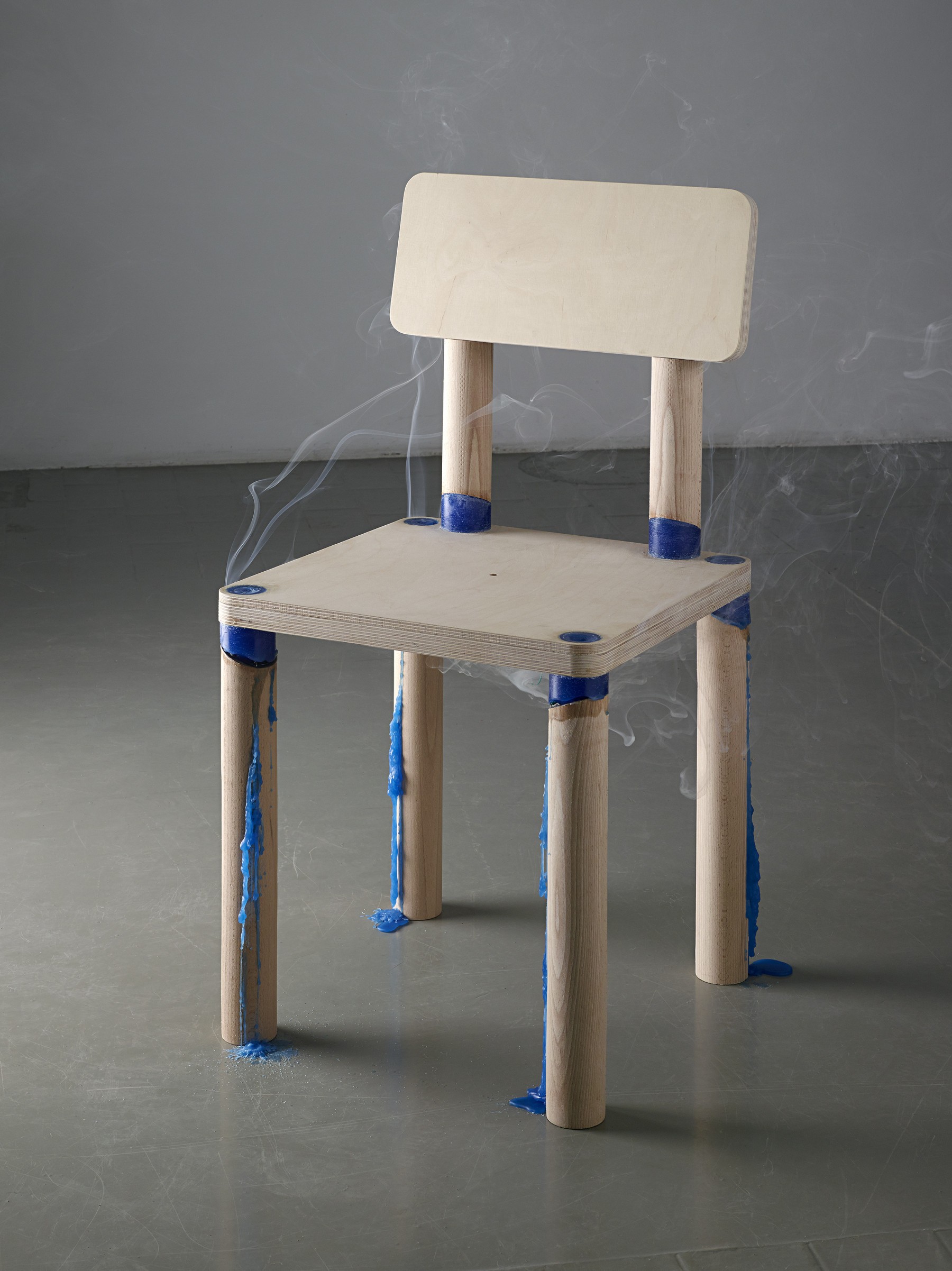 The DRM (or Digital Rights Management) Chair is a commentary on the practice of building planned self-destruction into a particular digital product. After it's been sat on eight times, the chair falls apart—just like a virtual DRM for digital files.