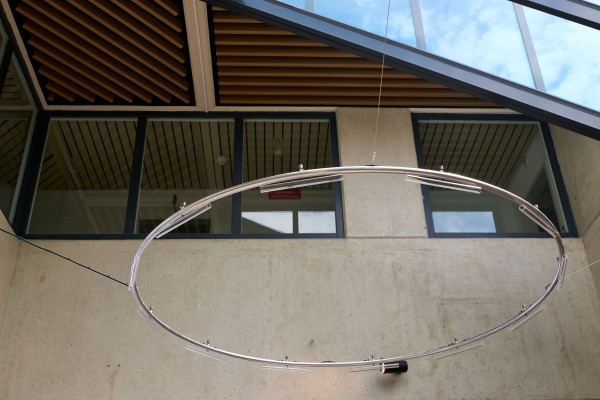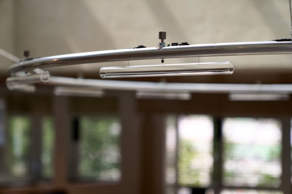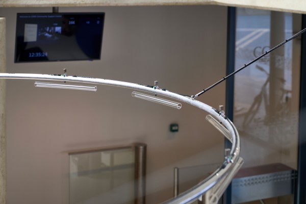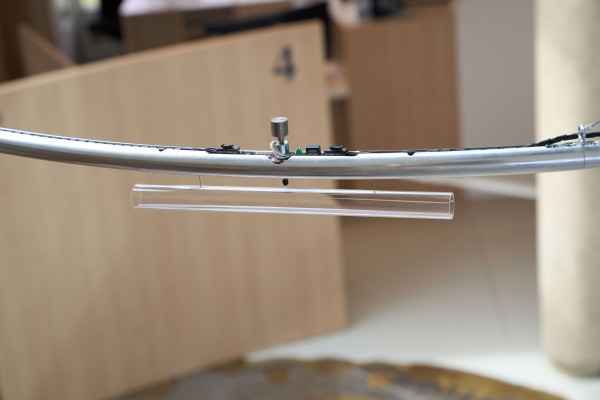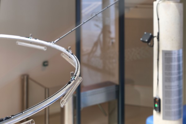 A Particular Score makes this cosmic stream tangible through real-time sound at the CERN Community Support Centre. When the sculpture detects a particle, it reacts by striking one of the 12 quartz crystal tubes, generating an unpredictable sequence of audible tones. The score thus evolves irregularly and randomly with each impact. It renders perceptibly a glimpse of a phenomenon that surrounds us and yet goes beyond us.