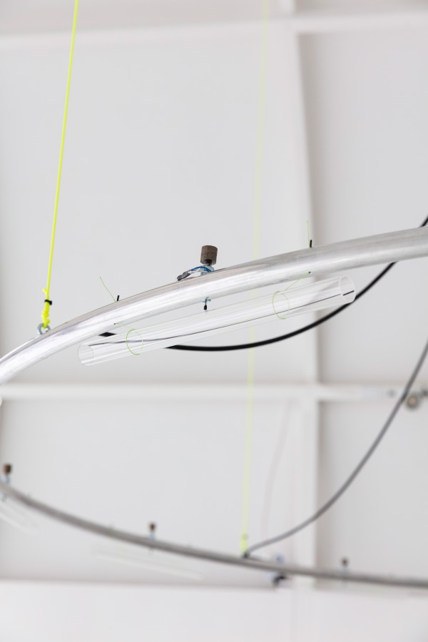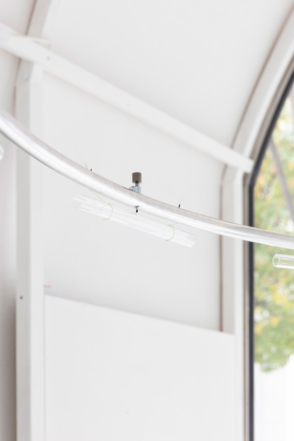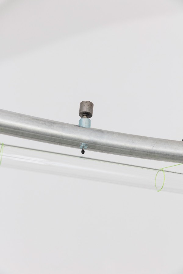 The installation “A Particular Score” makes the impact of these particles tangible—through sound—in a given place and in real-time. When a particle hits the detector, the installation reacts by knocking on one of the 12 quartz crystal tubes, forming an unpredictable sequence of audible tones. The score thus progresses irregularly, randomly with each impact as the installation surveys this cosmic stream. It renders perceptible a phenomena that surrounds us yet go beyond us.