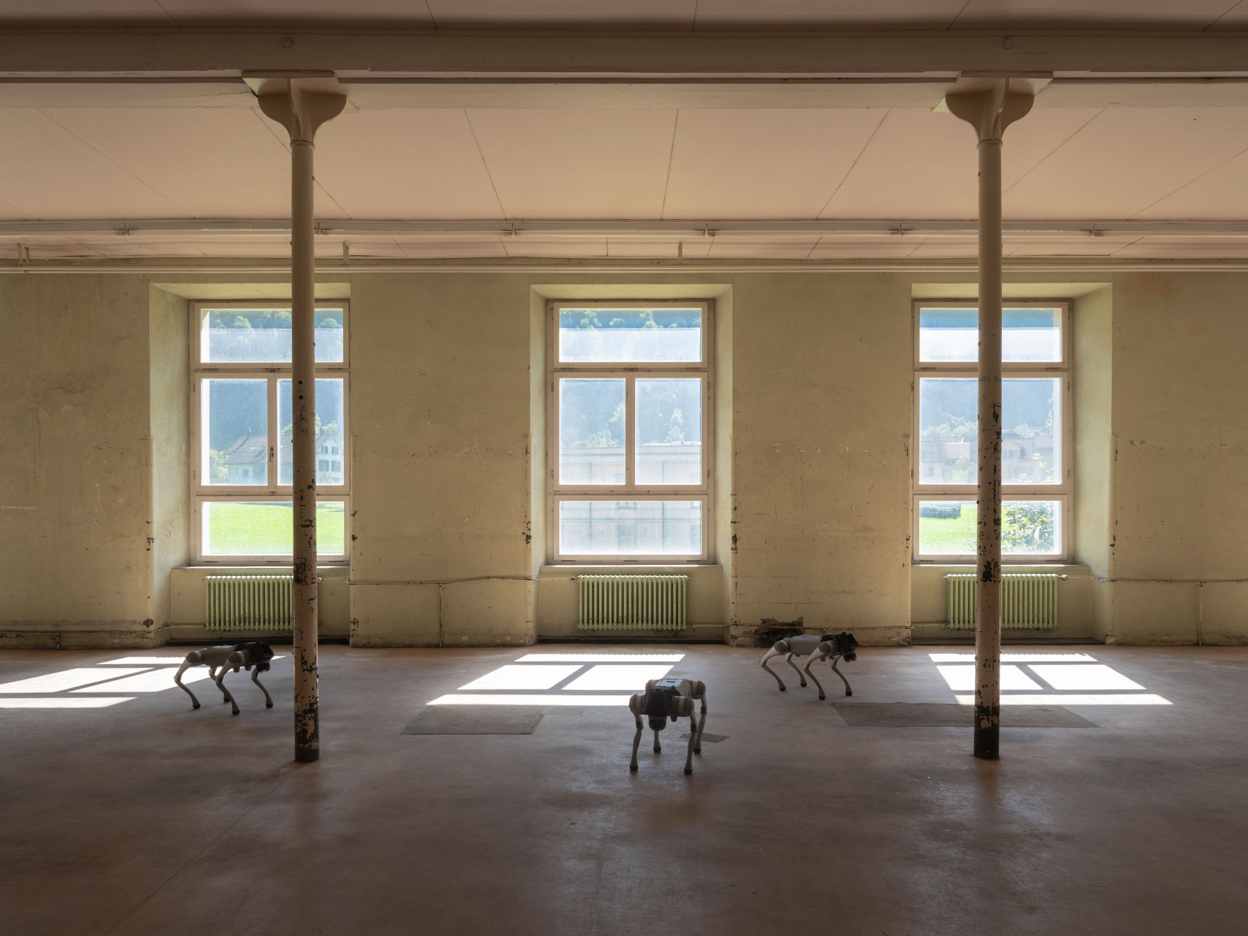 The third edition of the Klöntal Triennale expands its scope by taking place at the Legler Areal, a remnant of the former textile industry. Viewed through a contemporary lens, the industrial revolution seems less promising than it did 170 years ago. Nevertheless, the Legler Areal remains a significant site where the future was once shaped. Thanks to the rivers and streams, Glarnerland developed into one of the most industrialized regions in Switzerland. Starting in the mid-nineteenth century, the textile industry flourished, with water-powered fabric printing works, spinning, and weaving mills producing goods that circulated worldwide. The Legler family started with a mechanical weaving mill in 1857, supplied European haute couture with printed fabrics a hundred years later, and held a monopoly on denim production in Europe in the 1970s. Production ceased in 2002, leaving the architectural witnesses to this history empty ever since.
