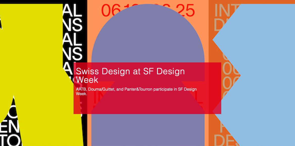 On the occasion of the San Francisco Design Week, swissnex San Francisco brings Swiss Design to the Bay Area. This year’s theme Intentional "Distortions" presents a virtual edition featuring the online exhibition by AATB Handshake and a Studio Crawl with three Swiss design studios.