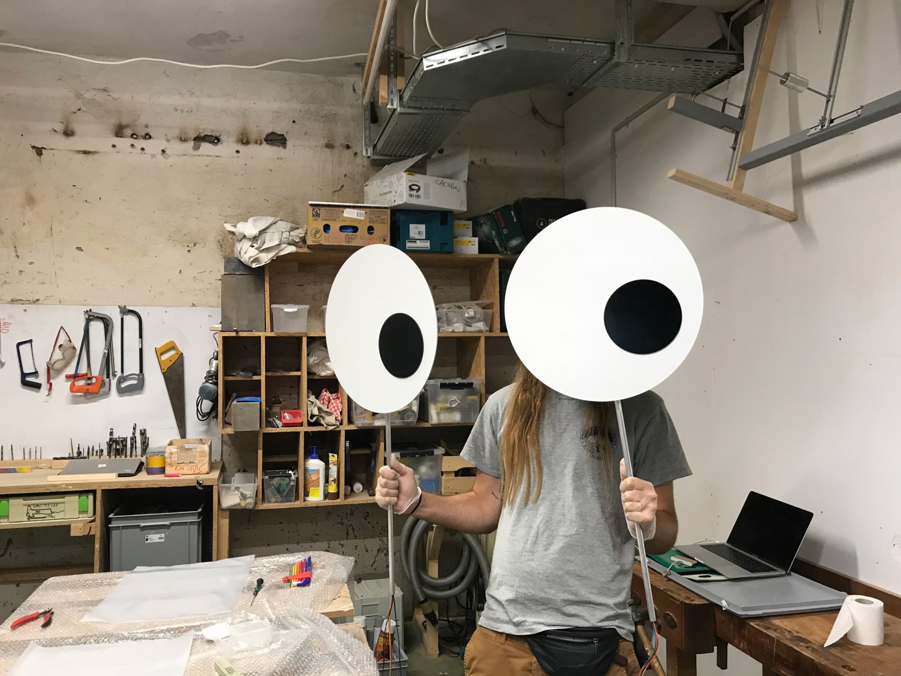 The two eyes follow the movement of the ISS, as it orbits around the Earth.