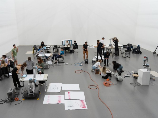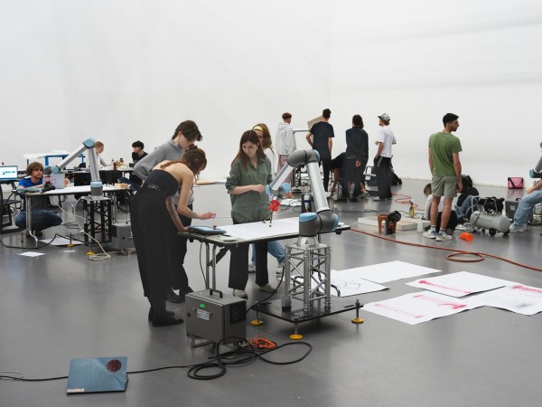 During this week, students had the opportunity to work hand-in-hand with robotic arms to produce experimental printing techniques.