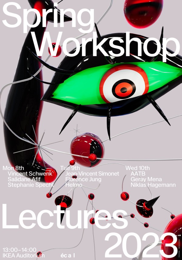 On the occasion of the workshop weeks in the Bachelor programs, ECAL invites international artists and designers to present their work from May 8 to 10, 2023.