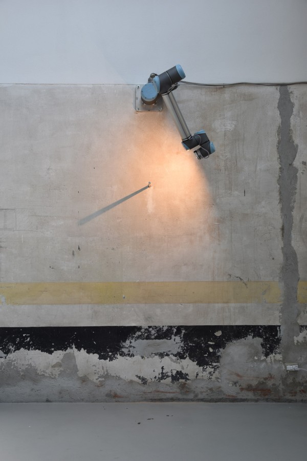 Sunny Side Up, a robotic sun developed by studio AATB, proposes a contemporary take on the archaic typology of the sundial. This interactive object embodies the movement of the Sun in real time as the Earth orbits around it. From sunrise to high noon and sunset, Sunny Side Up brings the movement of this celestial body close to the viewer. The robotic sun orbits around a metal rod, casting a shadow and allowing the measurement of time, as well as the viewer’s reconnection with celestial events.